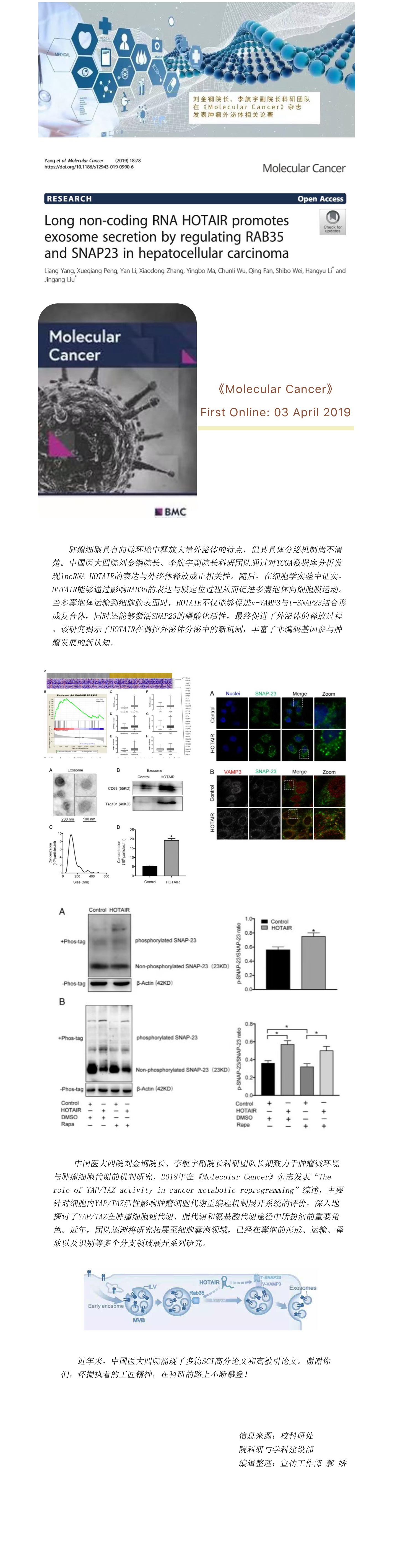 院長劉金鋼教授、副院長李航宇教授科研團隊在《Molecular Cancer》雜志發(fā)表腫瘤外泌體相關(guān)論著 影響因子10.679