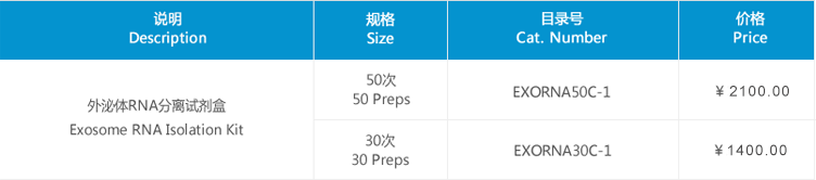 外泌體RNA分離試劑盒(Exosome RNA Isilation Kit)采用酚/胍鹽方法提取已分離的外泌體中總RNA(含有mRNA和miRNA),這里外泌體分離方法可以包括超速離心、化學(xué)沉淀、免疫捕獲、分子大小排阻等,接下來采用吸附柱(Spin Columns)法方便、快捷地純化和洗脫外泌體RNAs,可直接用于下游應(yīng)用,如realtime RT-PCR,Northern Blotting,NGS 測序和microarray等。